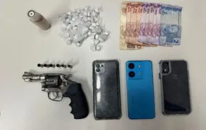 Os policiais reagiram ao ataque e, após a troca de tiros, um dos suspeitos foi encontrado caído. Próximo ao corpo, foram apreendidos uma arma de fogo calibre .32 com numeração raspada, além de aparelhos celulares, 35 porções de cocaína e um vasilhame com crack.