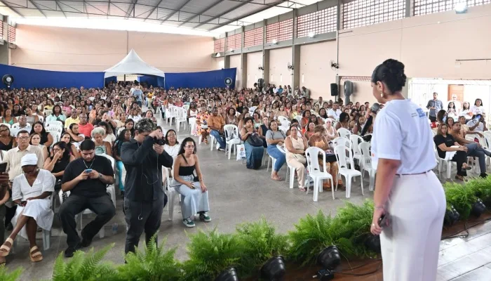 Ao compartilhar uma experiência pessoal, Flaviano Bomfim destacou a importância da valorização dos profissionais da educação: “Sou filho de uma professora que precisou trabalhar três turnos para ajudar meu pai no sustento de quatro filhos. Eu sentia a ausência dela e o esforço para garantir o nosso sustento. Então, eu sei bem o valor de um professor.”