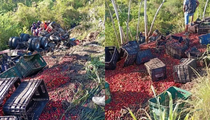 Motorista morre após carreta carregada com acerolas tombar e cair em ribanceira no Recôncavo Baiano