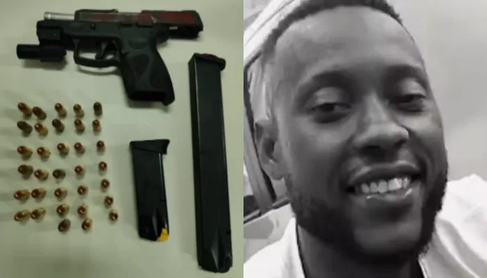 O nome do homem que foi preso não foi revelado. Ele foi autuado pelos crimes de resistência, supressão ou alteração de marca, numeração ou qualquer sinal de identificação de arma de fogo e corrupção de menor de 18 anos.