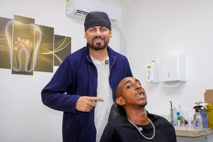 O cirurgião-dentista Ângelo Gabriel deu início, nesta quarta-feira (11/2), a um processo de transformação na vida do jovem Kaique, que perdeu parte dos dentes da frente após um episódio ocorrido durante a Lavagem de Vila de Abrantes, em Camaçari.