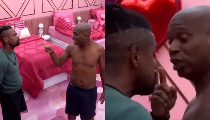 Durante o desentendimento no quarto, os dois trocaram ofensas depois que Leandro acendeu a luz do ambiente, o que irritou Edílson. Em meio ao bate-boca, o ex-atleta tocou o rosto do colega, que permaneceu com as mãos para trás.