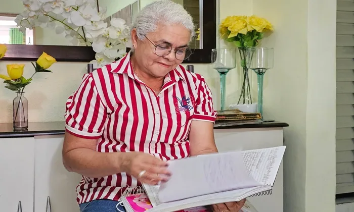 Josélia precisou abandonar os estudos ainda na 7ª série do Ensino Fundamental, impedida pelo marido de continuar frequentando as aulas. Foram 43 anos longe de uma sala de aula até decidir retomar o sonho interrompido. Há três anos, incentivada pela filha e pelos netos, matriculou-se na Educação de Jovens e Adultos (EJA) e voltou a estudar.