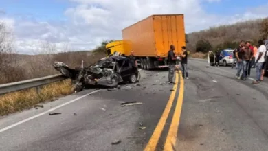 Um homem morreu após o carro que dirigia bater de frente com uma carreta na BR-116, em um trecho da…