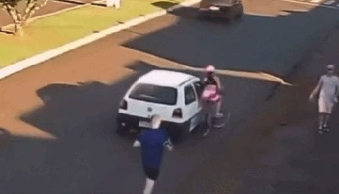 VÍDEO: Ciclista sofre acidente após ser assediada no trânsito