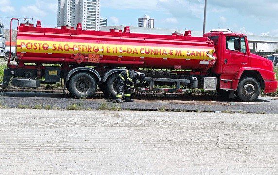 ACIDENTE: Caminhão-tanque colide e espalha combustível em Feira de Santana