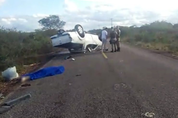 TRAGÉDIA! Mulher morre e homem fica ferido após carro capotar na BA-084