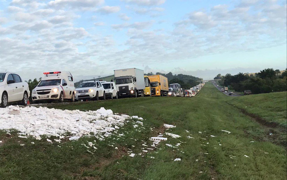 TUDO CONGESTIONADO: Baú de carreta que transportava gesso tomba na BR-324 e interdita pista
