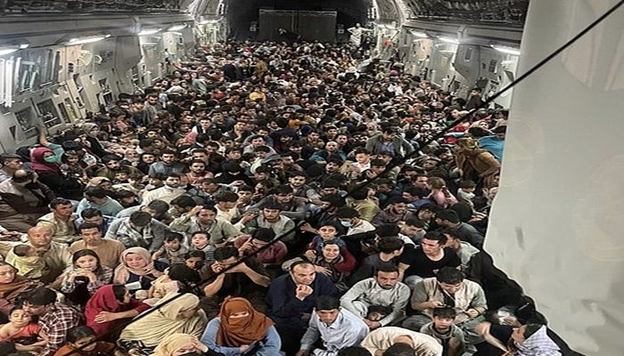 O VOO DA FUGA: Foto mostra interior de avião que escapou do Talibã com 640 pessoas