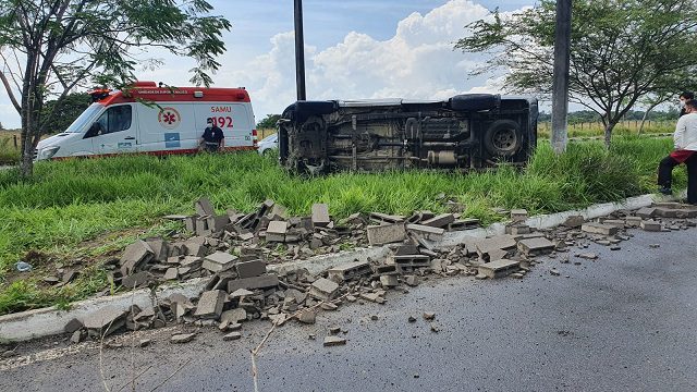 PERDEU O CONTROLE! Caminhonete carregada com tijolos capota em Feira de Santana