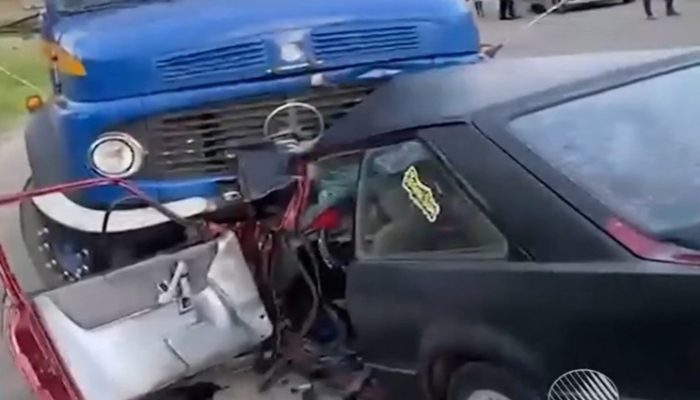 COLISÃO FATAL: Motorista morre após acidente entre carro e caminhão; frente do veículo ficou destruída