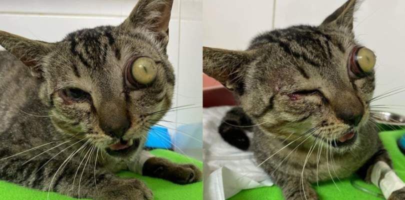 COITADO! Gato é resgatado após ser atropelado e ficar com olho ‘esbugalhado’