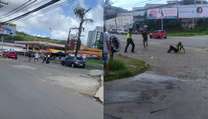 Dois agentes da Superintendência de Trânsito de Salvador (Transalvador) “saíram na mão” com um motorista na Avenida Jorge Amado, no…