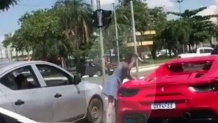 PEGOU AR! Mulher arranha Ferrari de R$ 3 mi com faca após motorista dizer que não tem R$ 1; veja vídeo