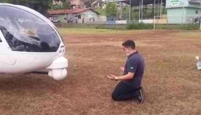 MOMENTO DE TENSÃO: Helicóptero da Globo faz pouso forçado e perde cauda; piloto reza após aterrissagem