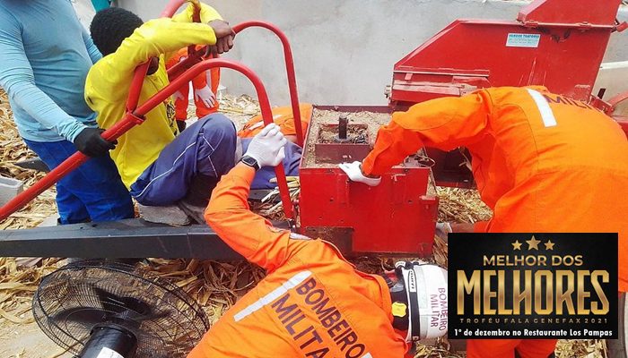 QUE PERIGO! Homem fica com perna presa em máquina de triturar trigo em Feira