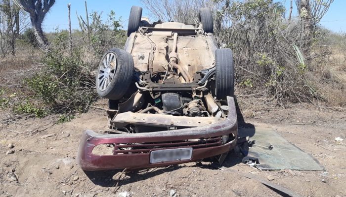 ACIDENTE: Grávida fica ferida após motorista perder controle da direção e carro capotar na BR-324