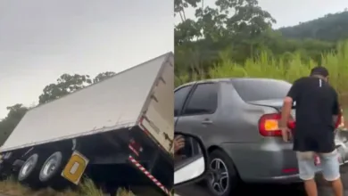 Caminhão e carro se envolvem em acidente na BR-324, em Amélia Rodrigues