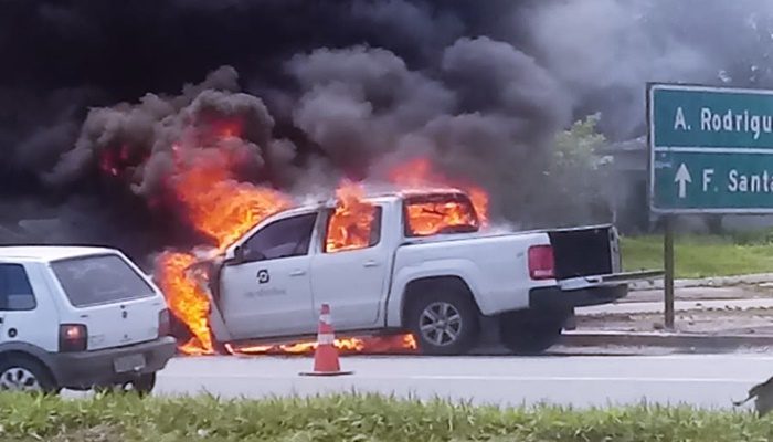 VÍDEO: Carro pega fogo na BR-324, em Amélia Rodrigues