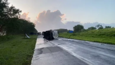 Caminhão-tanque tomba e interdita trecho da BR-324 em Amélia Rodrigues