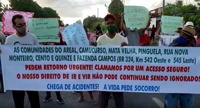 Moradores de Amélia Rodrigues voltam a protestar pela construção dos retornos em trecho da BR-324