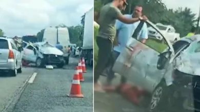Acidente entre três carros deixa mulher morta e causa engarrafamento de 5km na BR-324