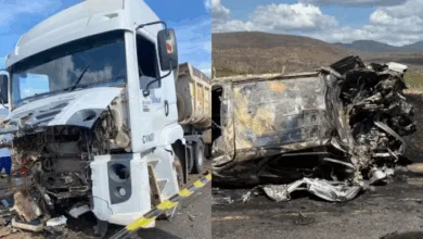 Batida entre caminhões deixa dois mortos na BR-116; cargas foram saqueadas