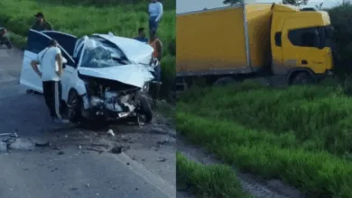 Homem morre e três pessoas ficam feridas após batida entre caminhão e carro na BR-101