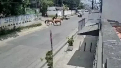 VÍDEO: Motociclista fica ferido após colidir com três cavalos soltos em rua de Feira de Santana
