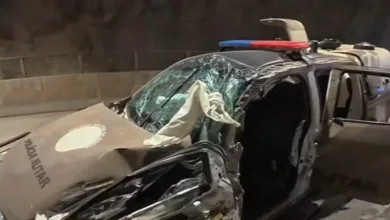 Viatura da PM colide durante perseguição e deixa três policiais feridos