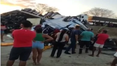 Criança morre e família fica ferida após carreta tombar na BR-116