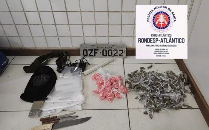 Dois rádios comunicadores com um carregador, drogas e facas foram apreendidos em uma ação da Polícia Militar no bairro da…