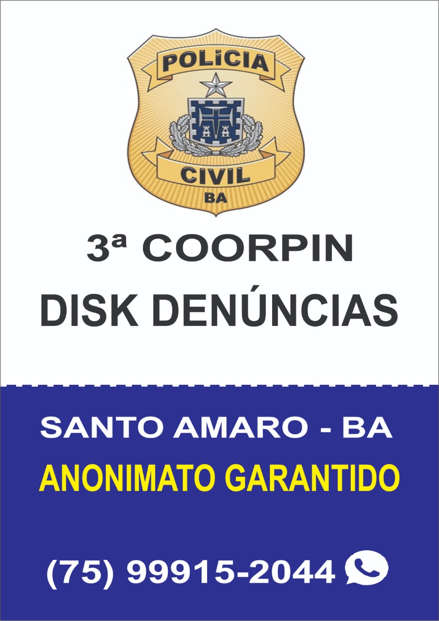 Contribuir com o trabalho da Coordenadoria Regional de Polícia do Interior de Santo Amaro (3ª COORPIN) ficou mais fácil e prático. Quem não tinha coragem de denunciar, pode ficar tranquilo para realizar essa tarefa. Com apenas uma mensagem, é possível agilizar e ajudar nos procedimentos de investigação dos crimes que ocorrem em Santo Amaro, e nas cidades vizinhas que a Delegacia Regional presta atendimento. Segundo o delegado Adriano Lobo, o objetivo é combater a criminalidade e tornar mais eficiente o trabalho de investigação.