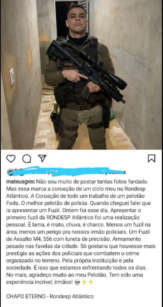 A última postagem do tenente no Instagram fala da dificuldade do trabalho da polícia, da falta de prestígio e do amor pela Rondesp Atlântico. Confira: