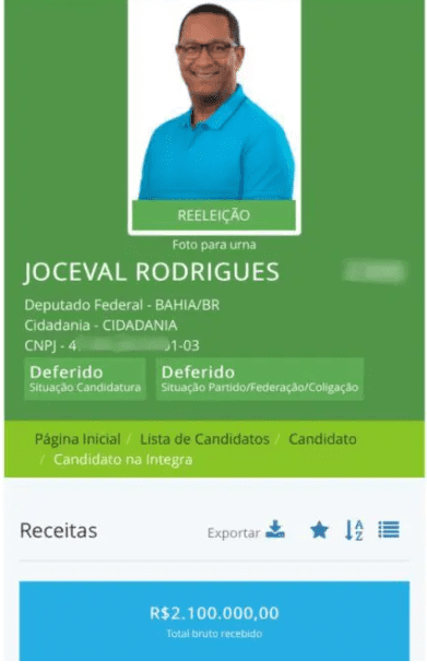 O suplente de deputado federal e vereador licenciado de Salvador, Joceval Rodrigues, que é presidente do Cidadania na Bahia, recebeu R$2,1 milhões do fundo eleitoral para tocar sua campanha. O recurso foi depositado na conta de Joceval pela Direção Nacional do seu partido, conforme apuração do Informe Baiano junto ao Tribunal Superior Eleitoral (TSE), nesta terça-feira (30/8).