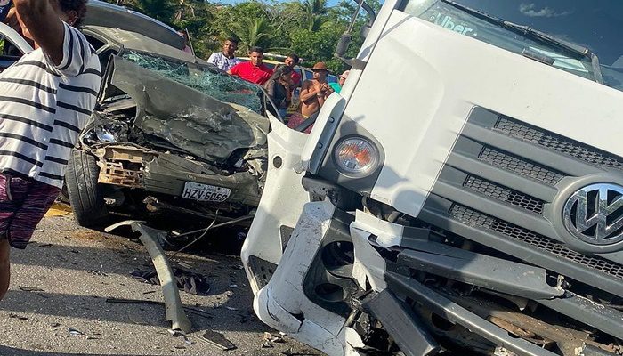 Uma pessoa morre e outra fica ferida após colisão entre carro e carreta na BR-101