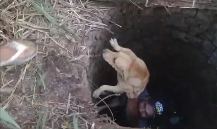 Cadela é salva por ‘amigo’ após cair em cisterna de 6 metros