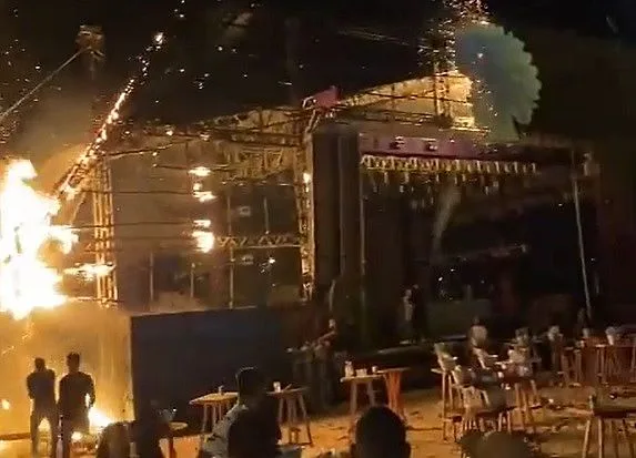 Palco de casa de show pega fogo durante apresentação em Maceió; assista