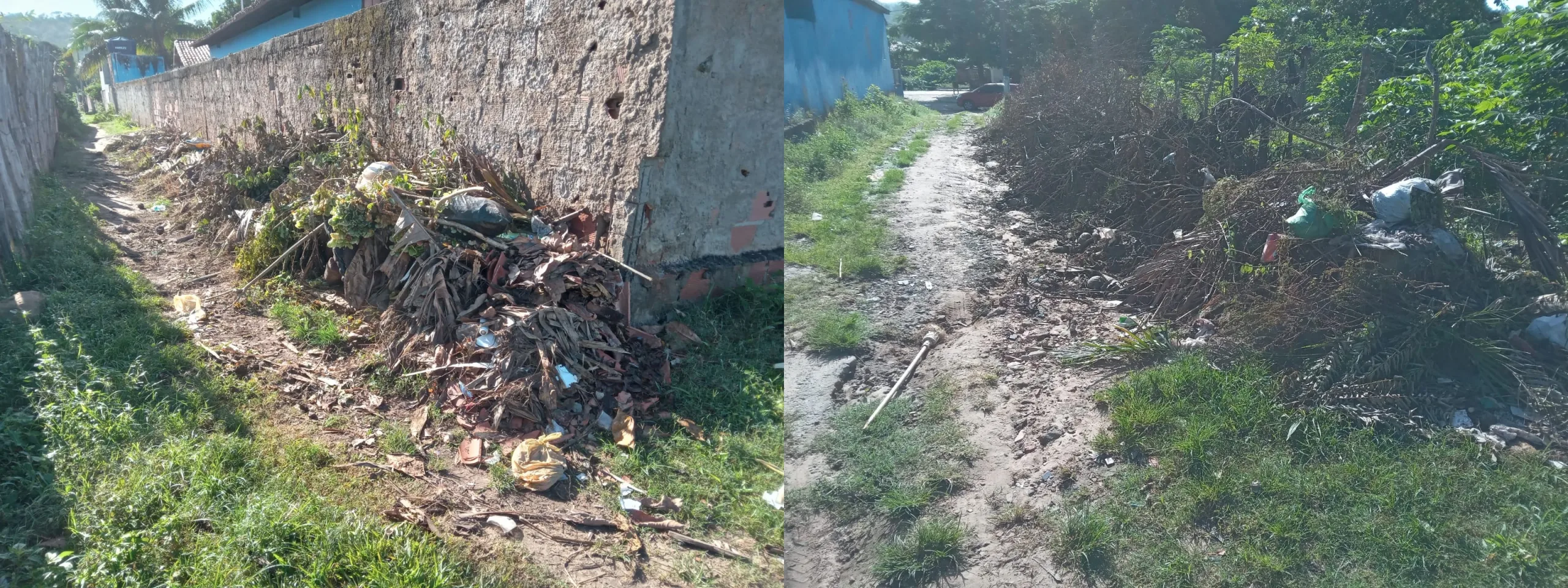 Em vários pontos do distrito a falta de manutenção é evidenciada pelo acúmulo de lixo e mato que tomam conta das ruas, contribuindo para um cenário de abandono que preocupa os residentes.