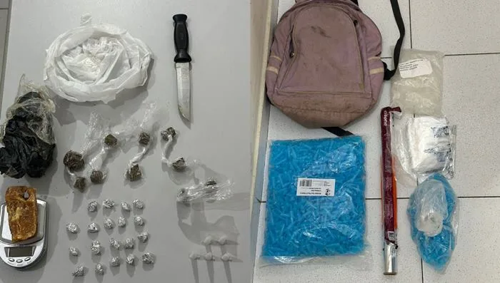 Ainda de acordo com as informações, ao realizar buscas no local, os PMs encontraram uma mochila contendo 10 buchas de maconha, 19 pedras de crack, 5 pinos de cocaína, uma balança digital e outros materiais relacionados ao tráfico de drogas.