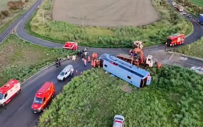 Ônibus tomba com 50 passageiros e deixa 10 mortos