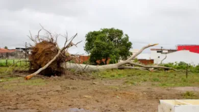 Árvore centenária cai em Conceição do Jacuípe após chuvas e ventos fortes