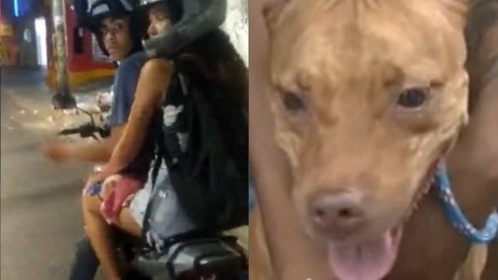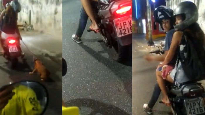 Casal flagrado arrastando cachorro em motocicleta conta o que aconteceu