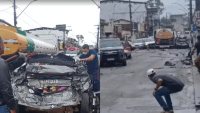 Caminhão-tanque desgovernado atinge veículos e deixa quatro feridos no Recôncavo Baiano